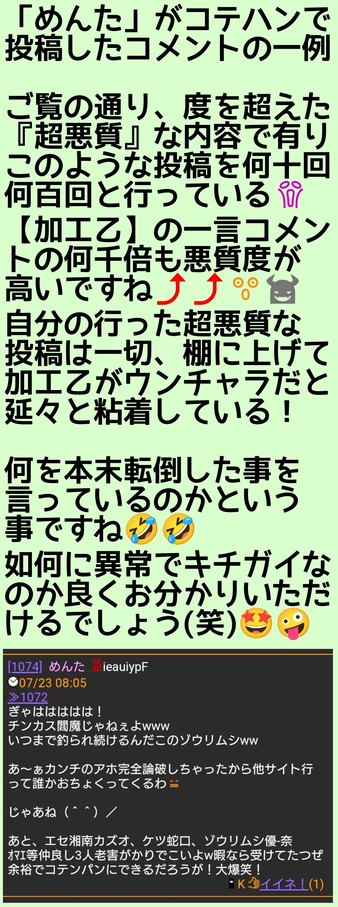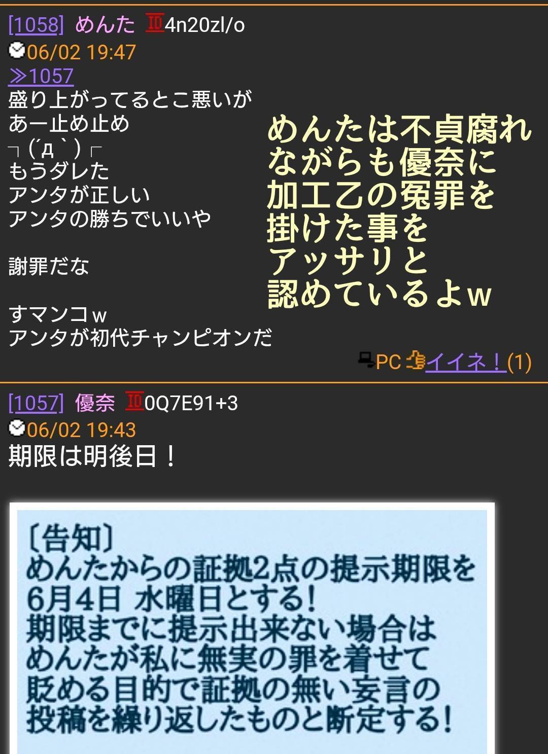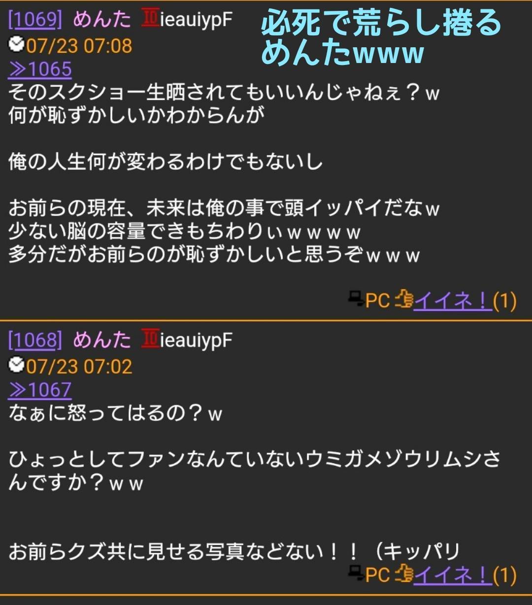 めんたが荒らしている証拠のスクショはなんぼでも出て来るが、優奈が荒らしている証拠は一つも出て来ないなあ