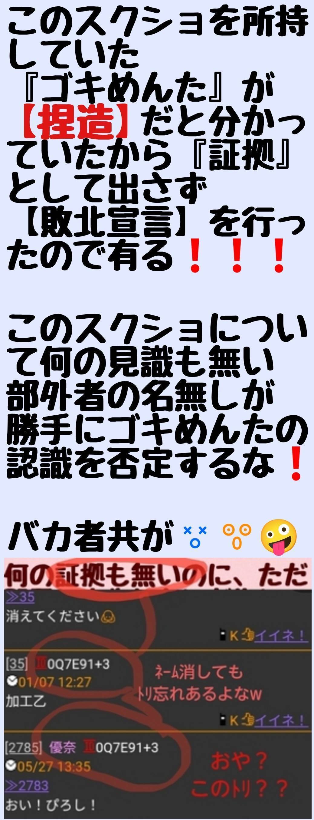 こちらの捏造もろバレのスクショと元は同じなので、今更そんな物に縋っても意味は無いよw