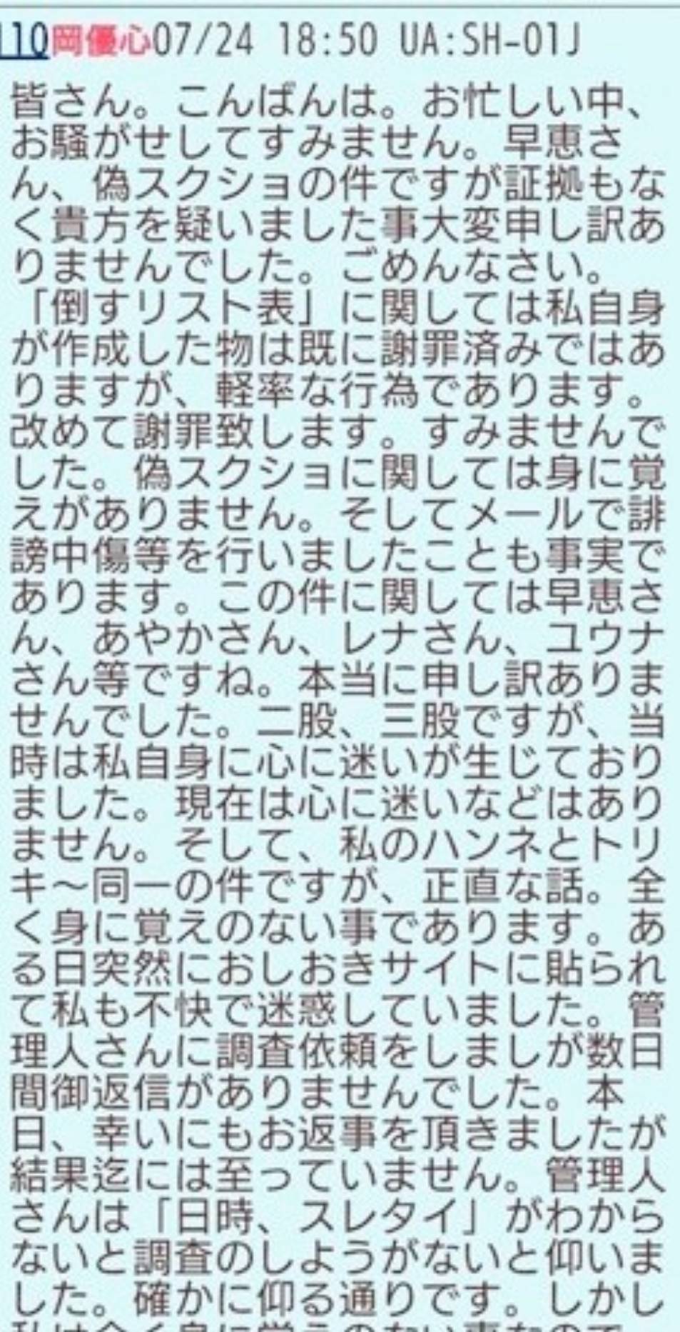 ↓が あかねスレ内での優奈の発言です。