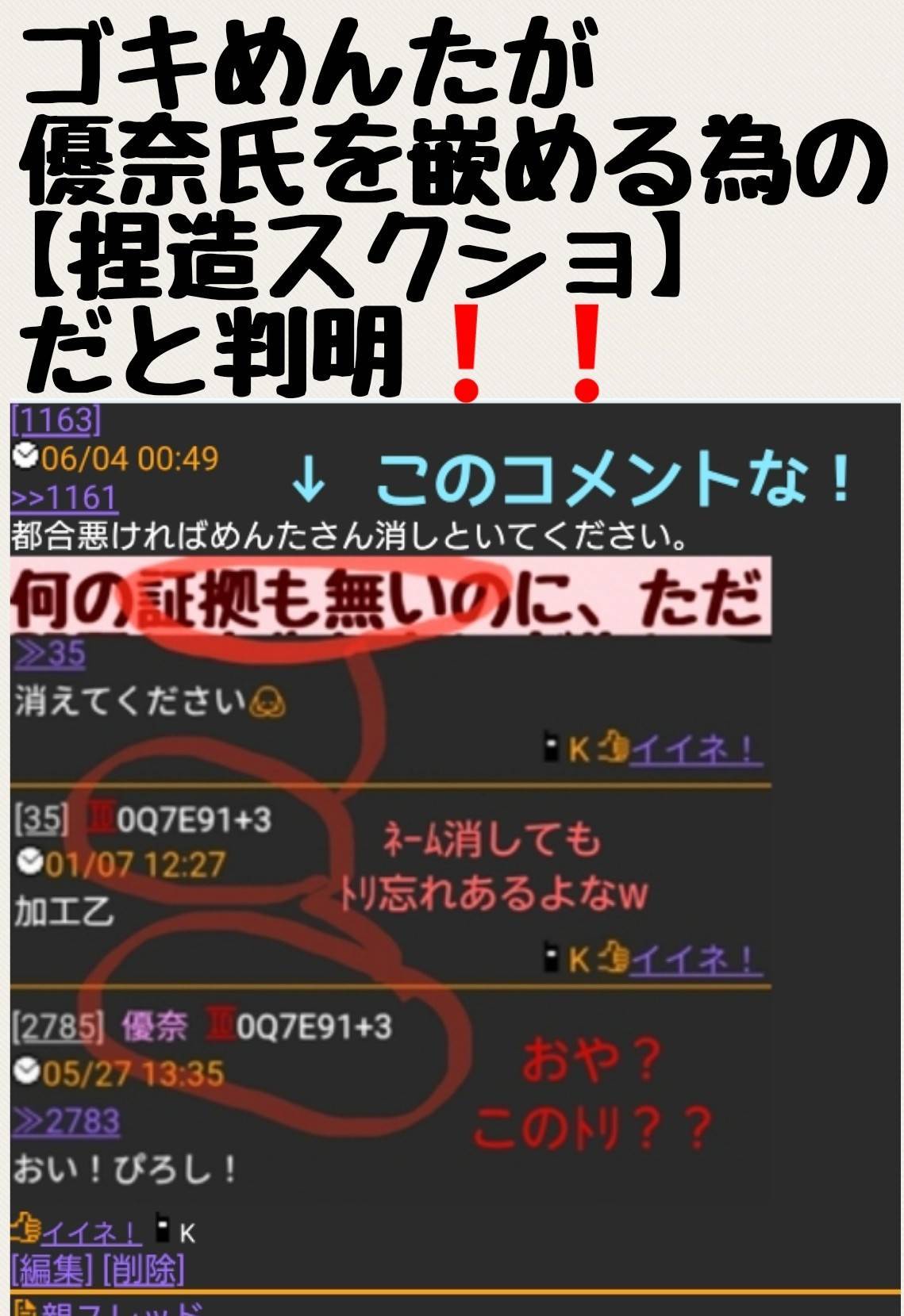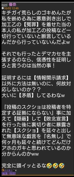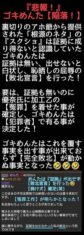 ゴキめんたは自ら優奈氏に加工乙の【冤罪】を着せた