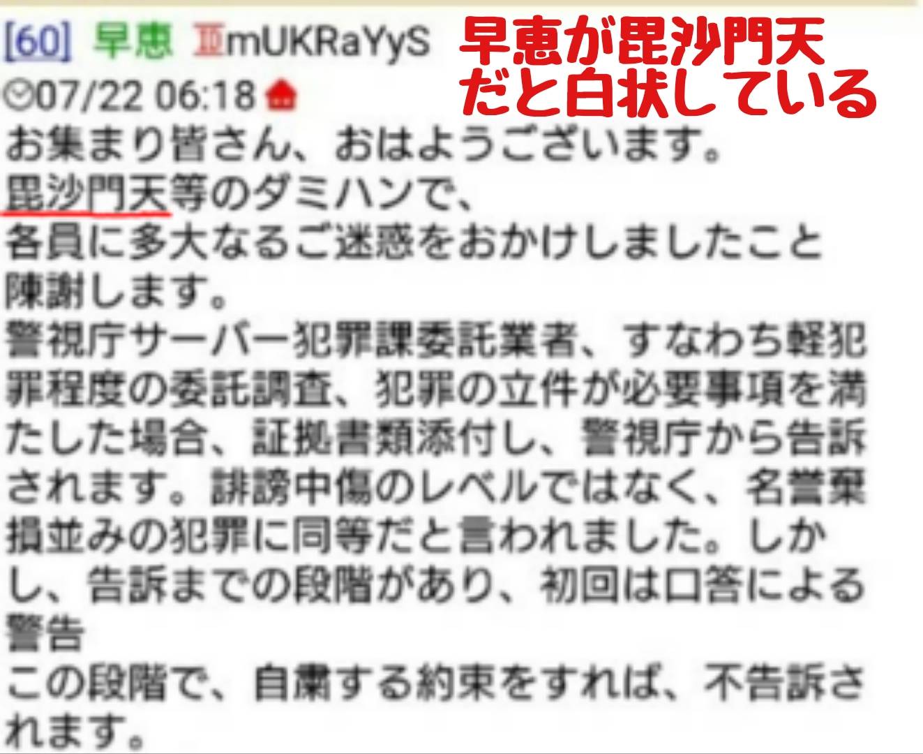 優奈はユカポン、加工乙、毘沙門天の荒らしで確定。