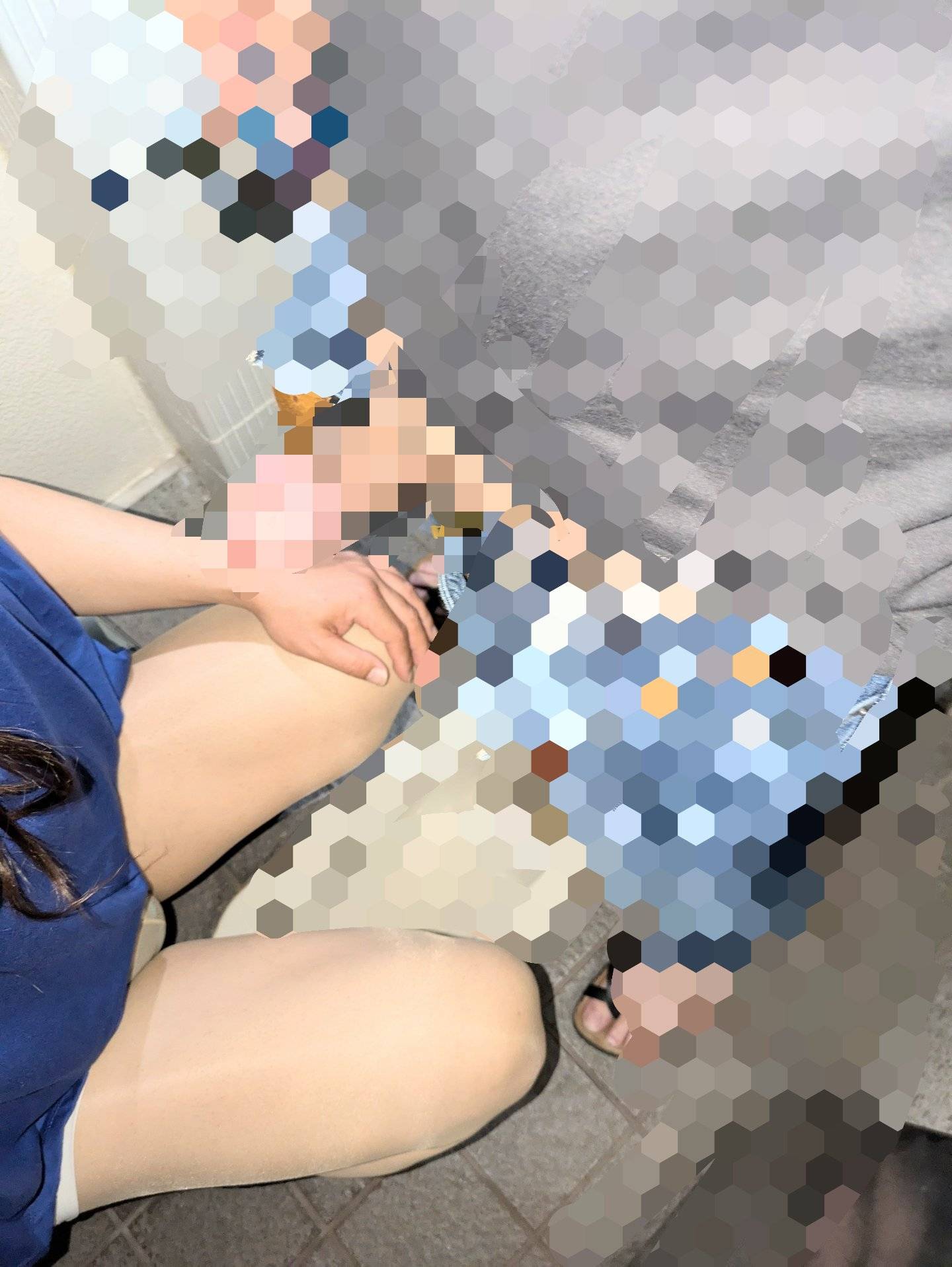 アダショから公園に移動しベンチで休憩💕「アダショいたよね?棚反対側からずっと見てたけどパンツ丸見えだったよ💕」と声かけられ「ねぇ少し話そよさうよ」とトイレ移動。やっぱりすぐにベルト解いて「しゃぶって💢」と😢