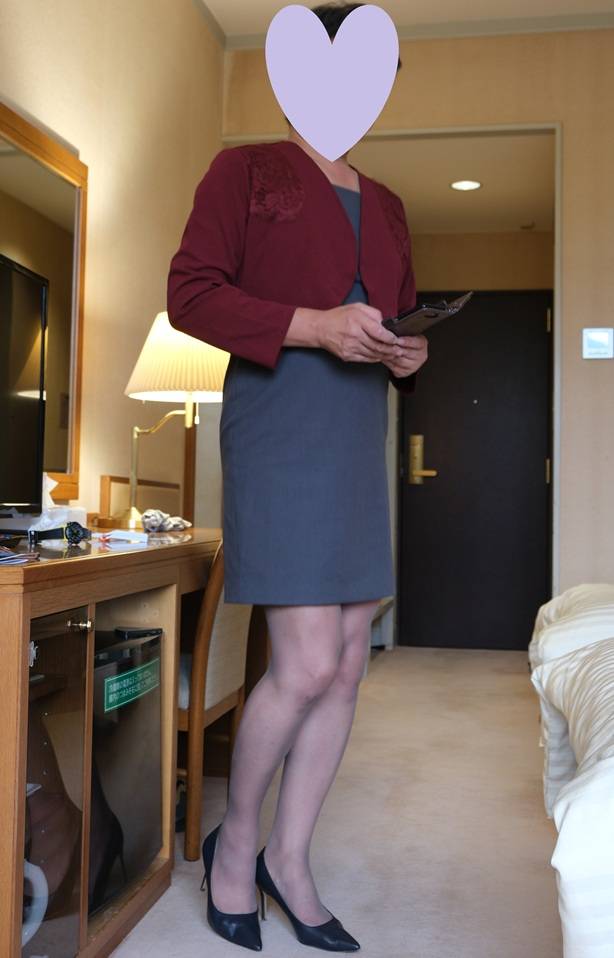 小豆色がかって見えるけど、普通の濃い目のグレーパンストです。