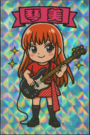 Mちゃん、こんばんは🌙😊 見てくださ〜い!!またまた、フィギュアの新作 作って頂きました。琴美のベースも定着したみたいで嬉しいです。 ステッカーもペタッ!! (◠‿・)—☆ Miss Bass Girl !!