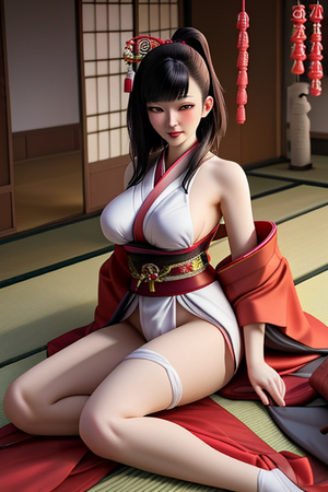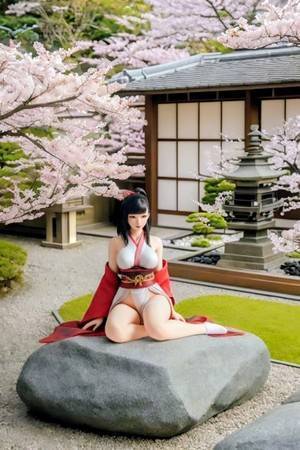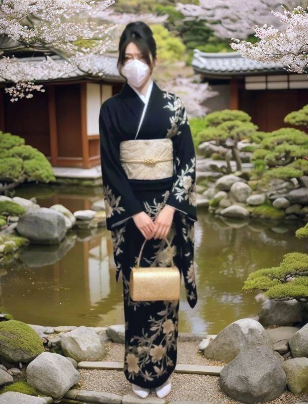 2 洋服を着せ替えた画を背景をコンプセントを打ち込みます この画像背景は日本庭園です