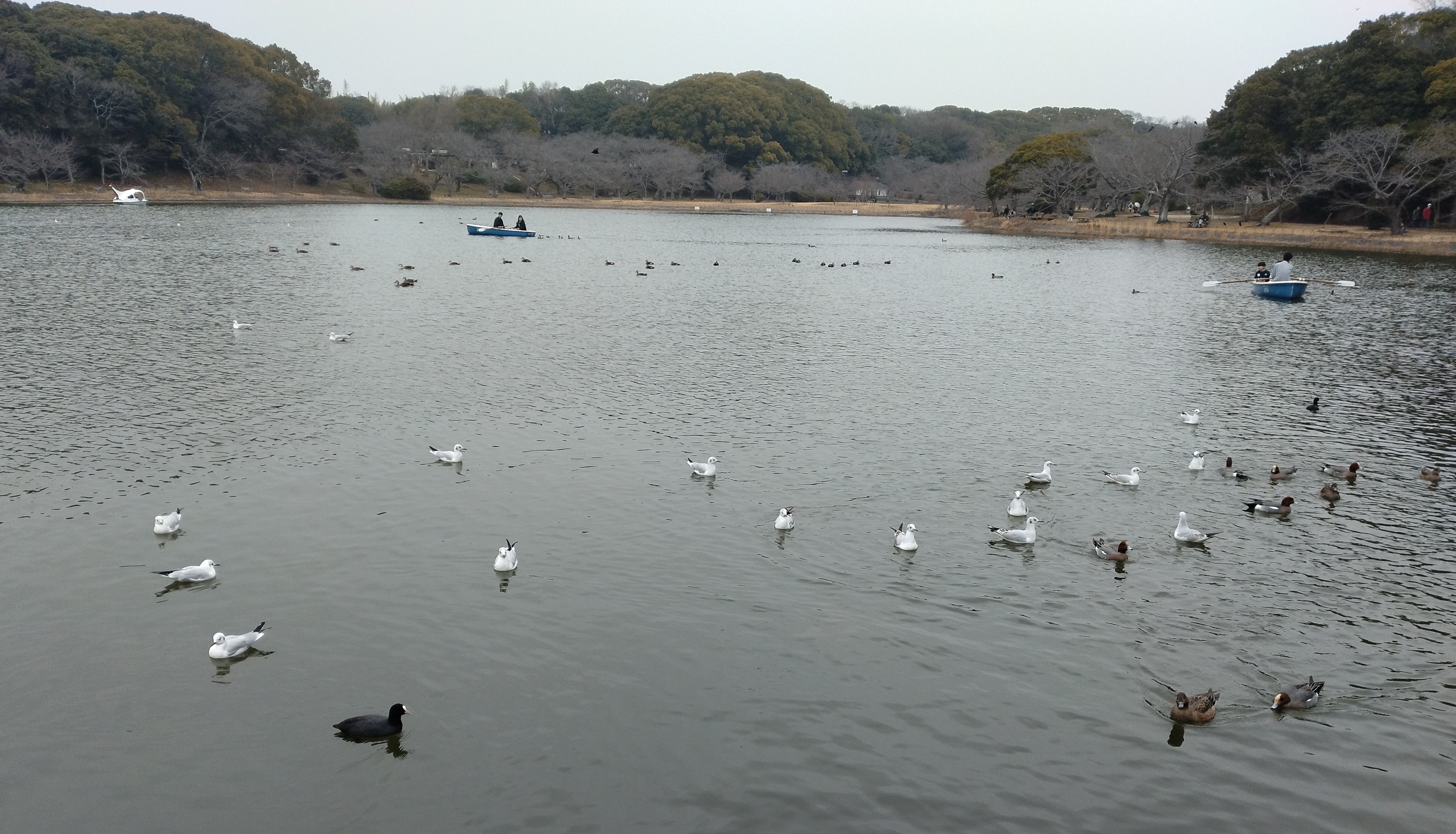 明石公園の渡り鳥は、真鴨とカモメと川鵜がメンバーです☆真鴨とカモメが数多いです☆