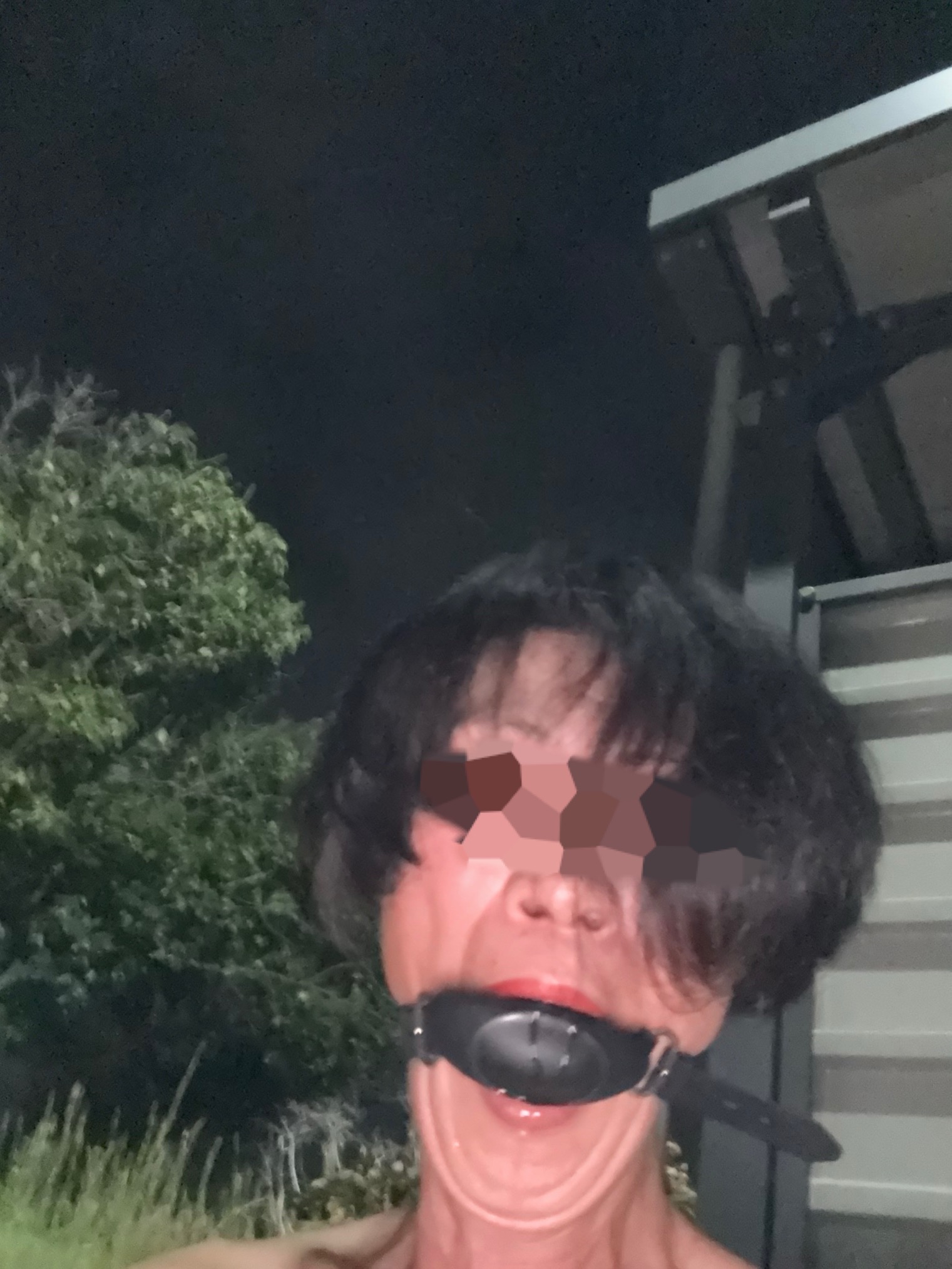リング枷に30cm位のアナルプラグを咥えてます