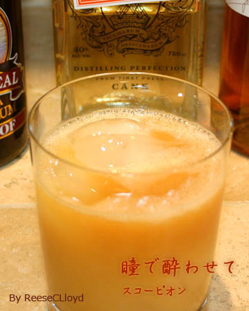 従姉のスレで要望のあったラブレターかわりのカクテル。「スコーピオン」言葉は「サソリ」ではなく、「瞳で酔わせて」。🍸