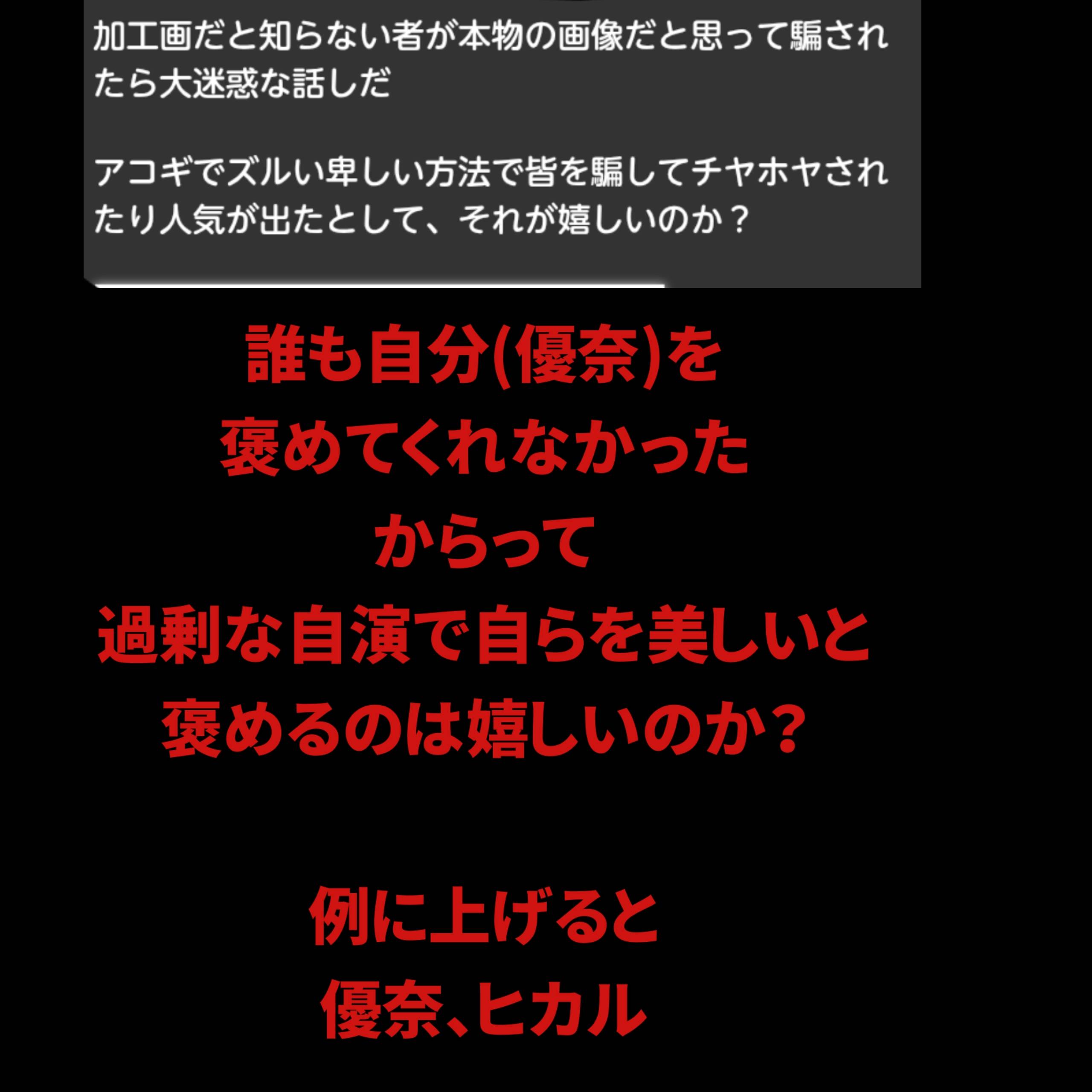 無駄なケチをつけてた人がいたけど加工乙の罪人として有名な「優奈」って名前の人かな?