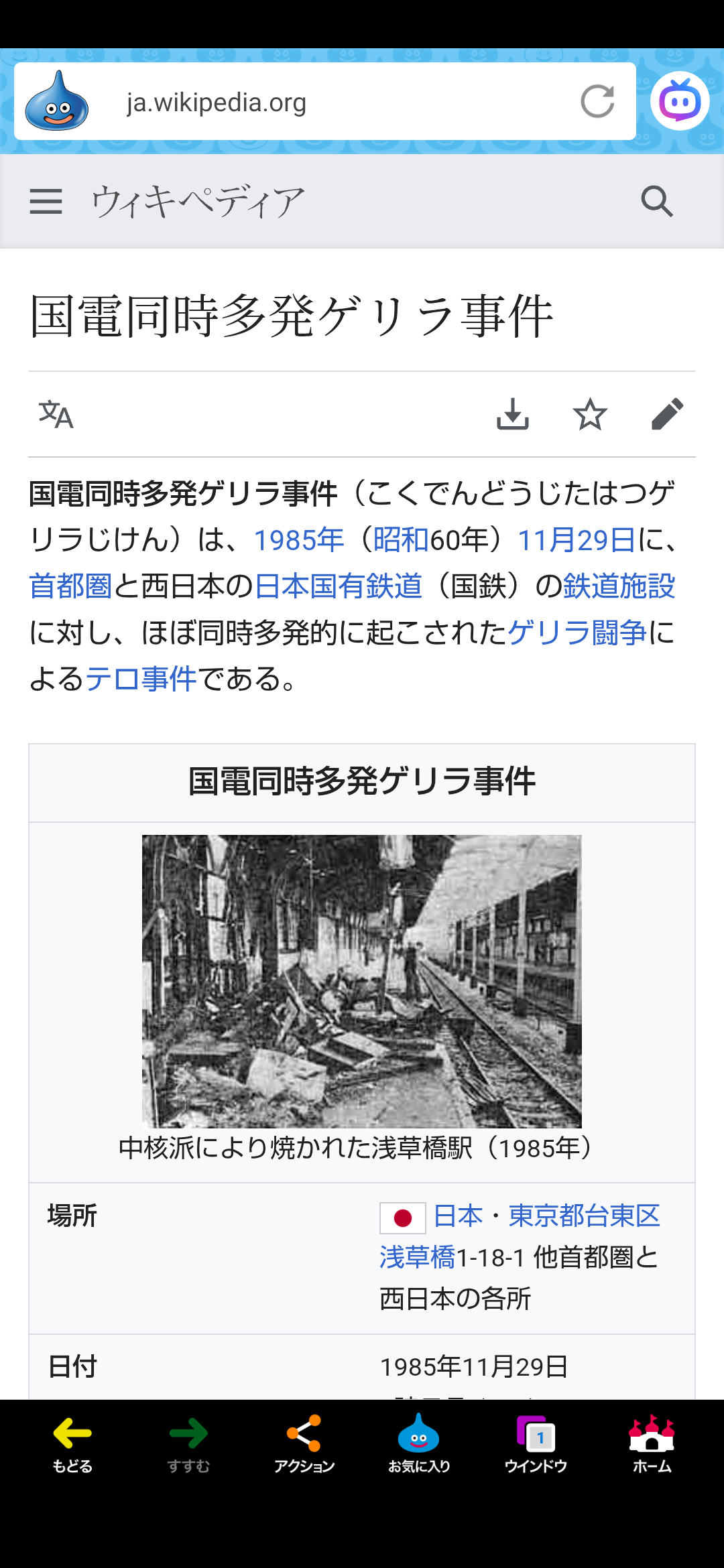 「パレスチナ人民連帯国際デー」、「1985年(昭和60年)のこの日、3千本の列車が運休し600万人に影響の出た国電同時多発ゲリラ事件が起きた日」、「1987年(昭和62年)のこの日、北朝鮮工作員による大韓航空機(858便)爆破事件の起きた日」。🎌