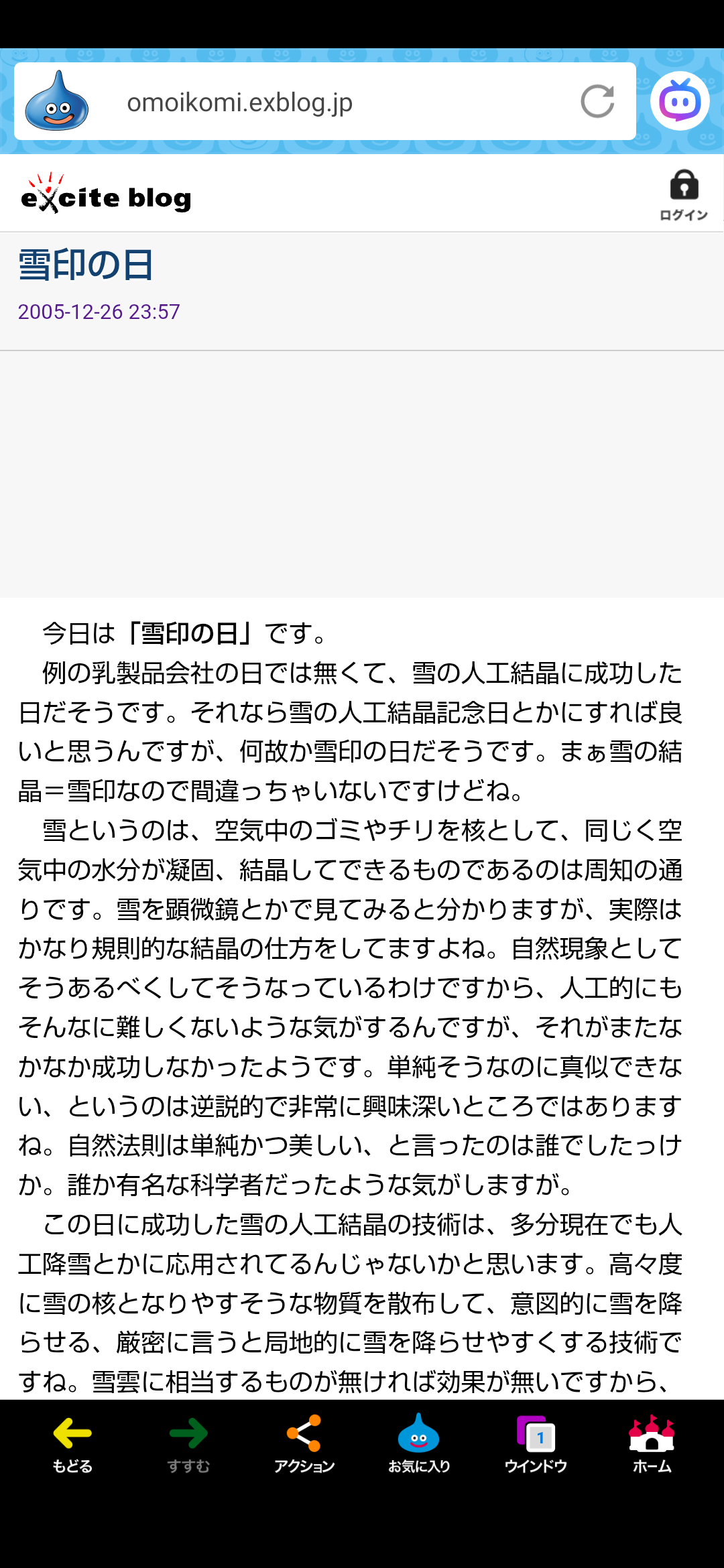 「雪印の日(物理学者の中谷宇吉郎等が雪の人工結晶に成功した日)」。🎌