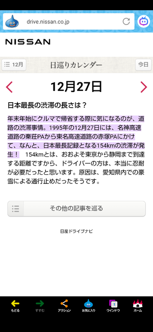 「1995年(平成7年)のこの日、名神高速道路(滋賀県秦荘PA)から東名高速道路(愛知県赤塚PA)間で日本最長記録となる154kmの渋滞が発生した日」。🎌