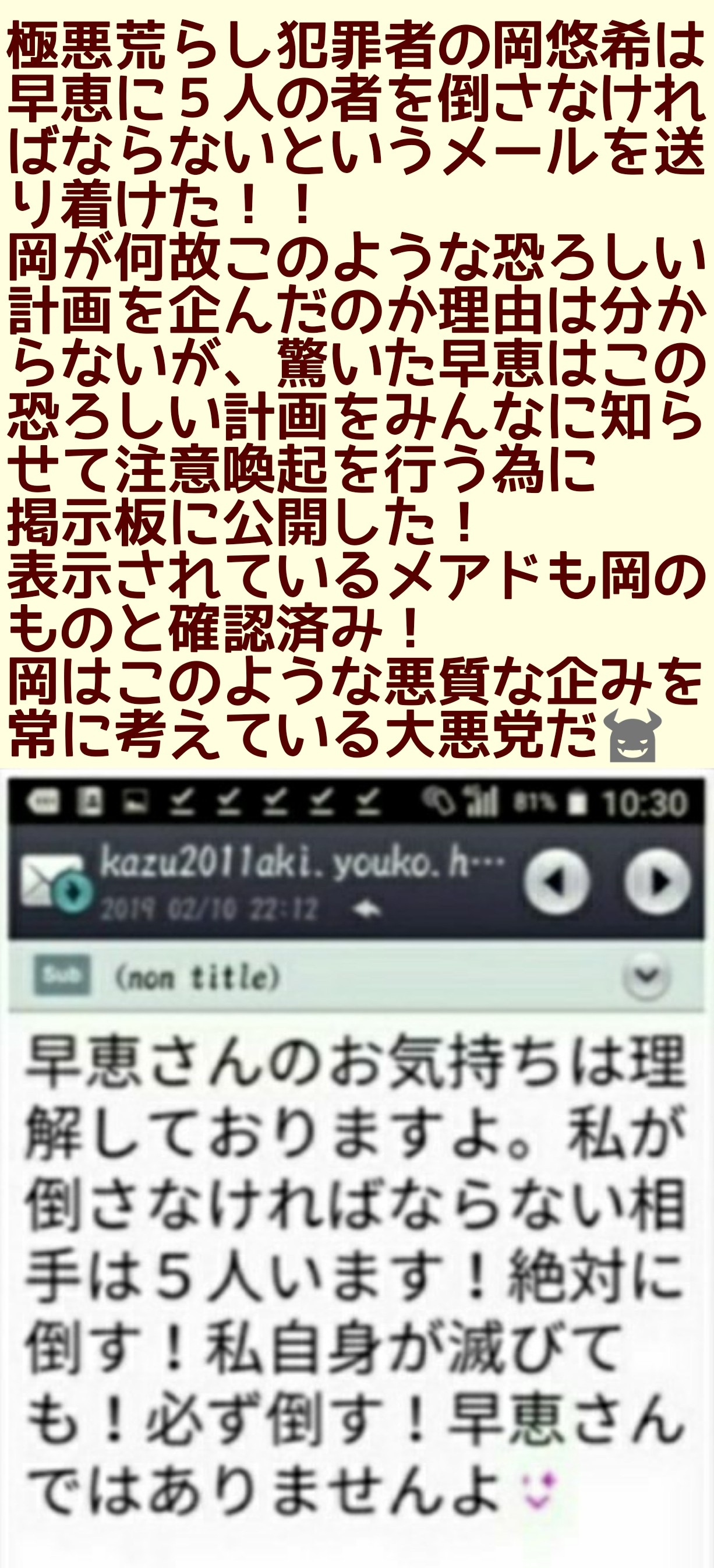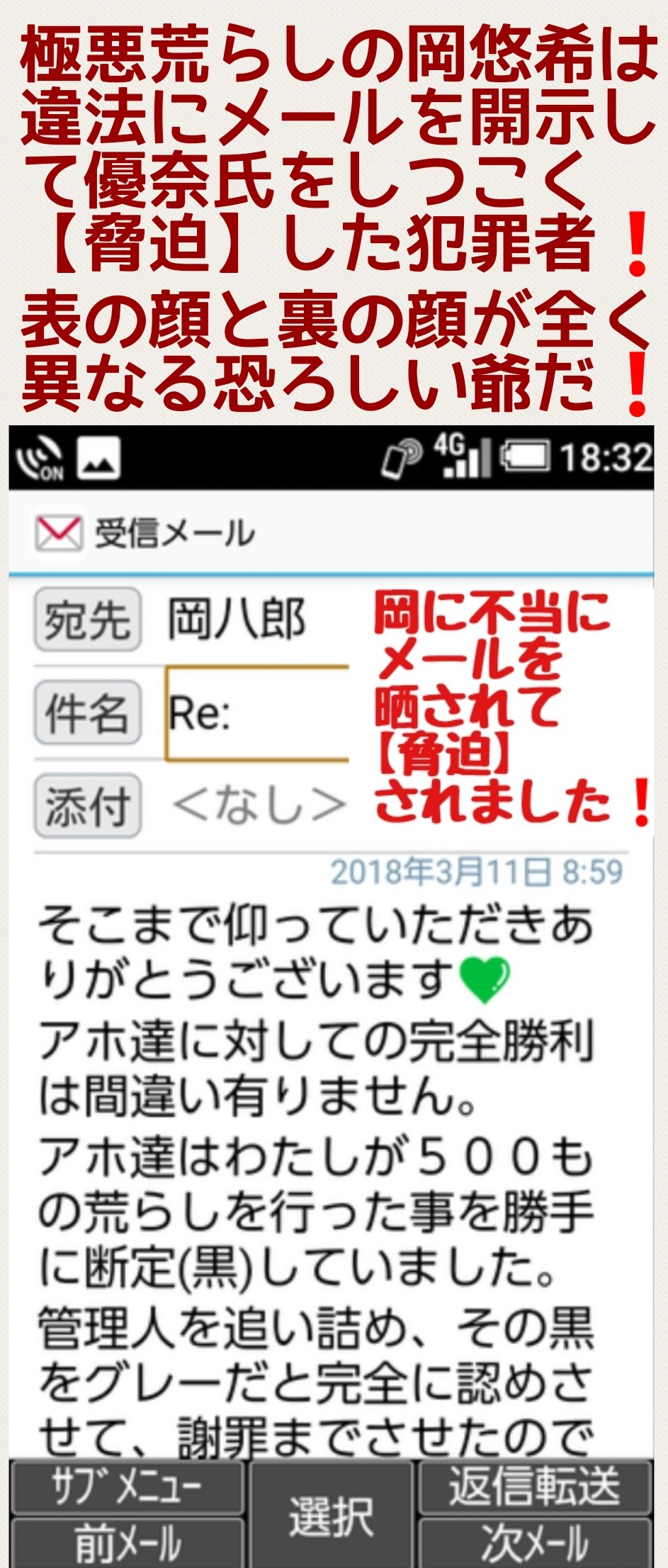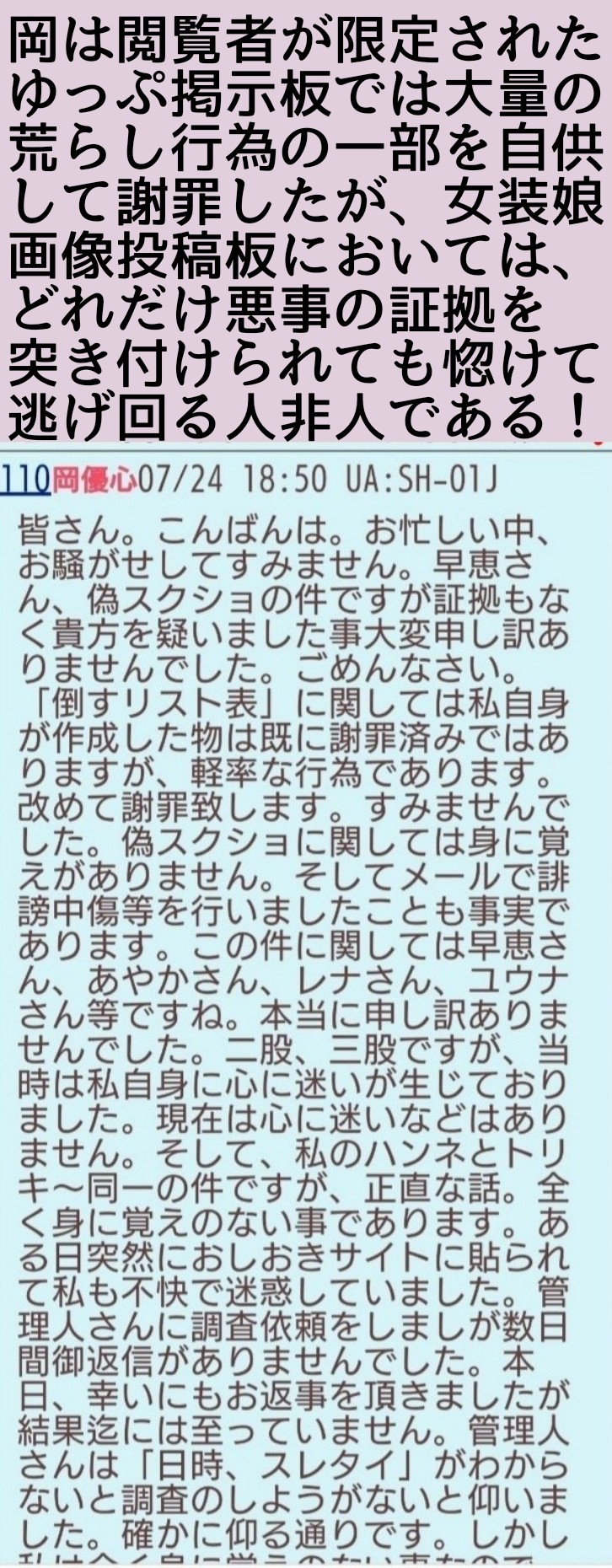 優奈の悪事なんて加工乙で敗北しためんたが悔し紛れで何の証拠も挙げずに勝手に話を作って並べて誹謗中傷しているだけのアホの戯言やもんな