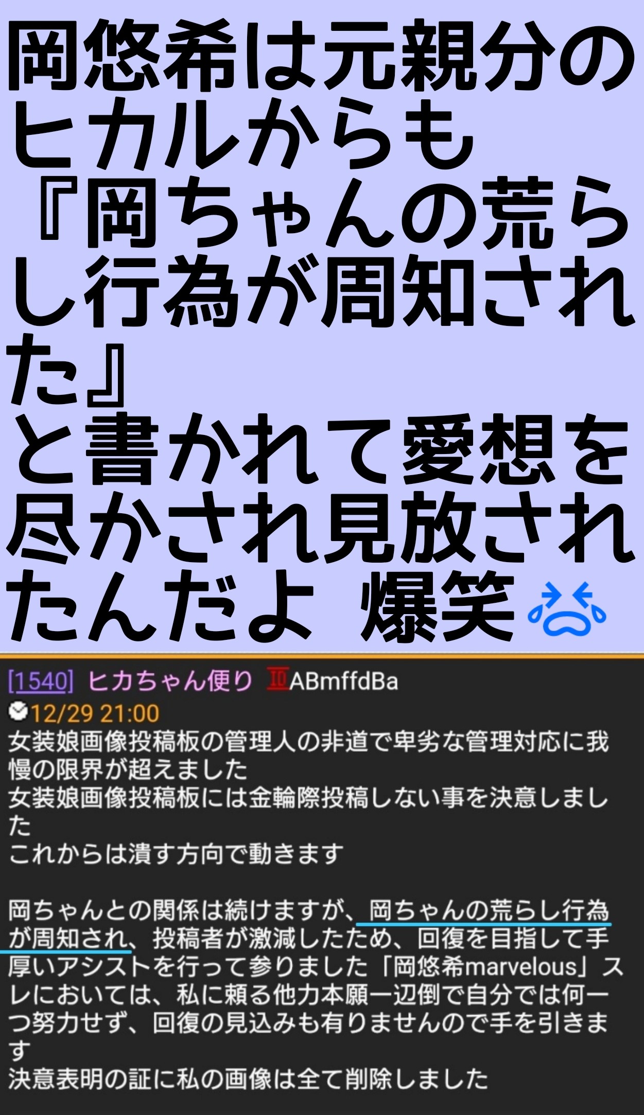 画像出せない荒らしだから純男だと思ってました🤣🤣🤣