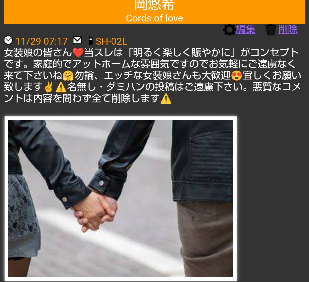 女装の皆さんは自身の画像を貼ってますが、ゴキブリみたいな人は純男なので画像は貼らないようですね😁