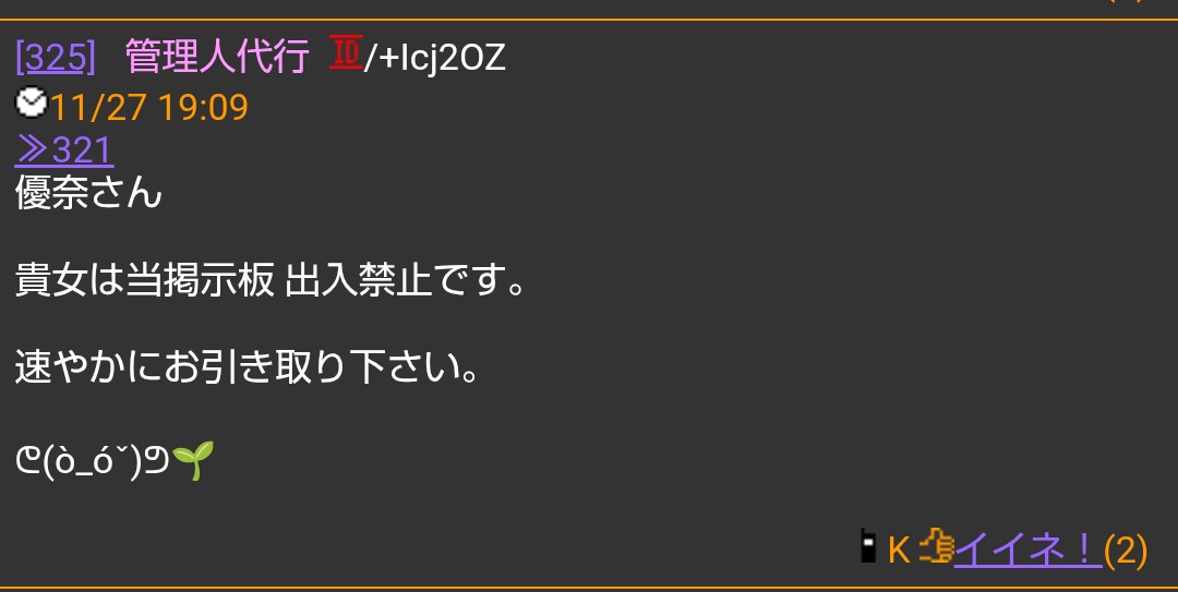 優奈が岡のスレに投稿したら全て無断で削除する暴挙!!