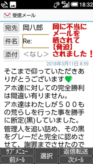 更に違法にメールを公開して【脅迫】の犯罪行為を行っていた!!